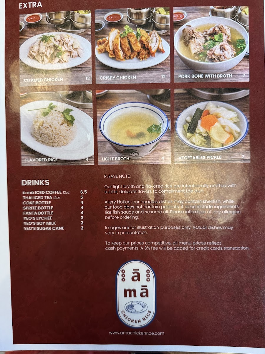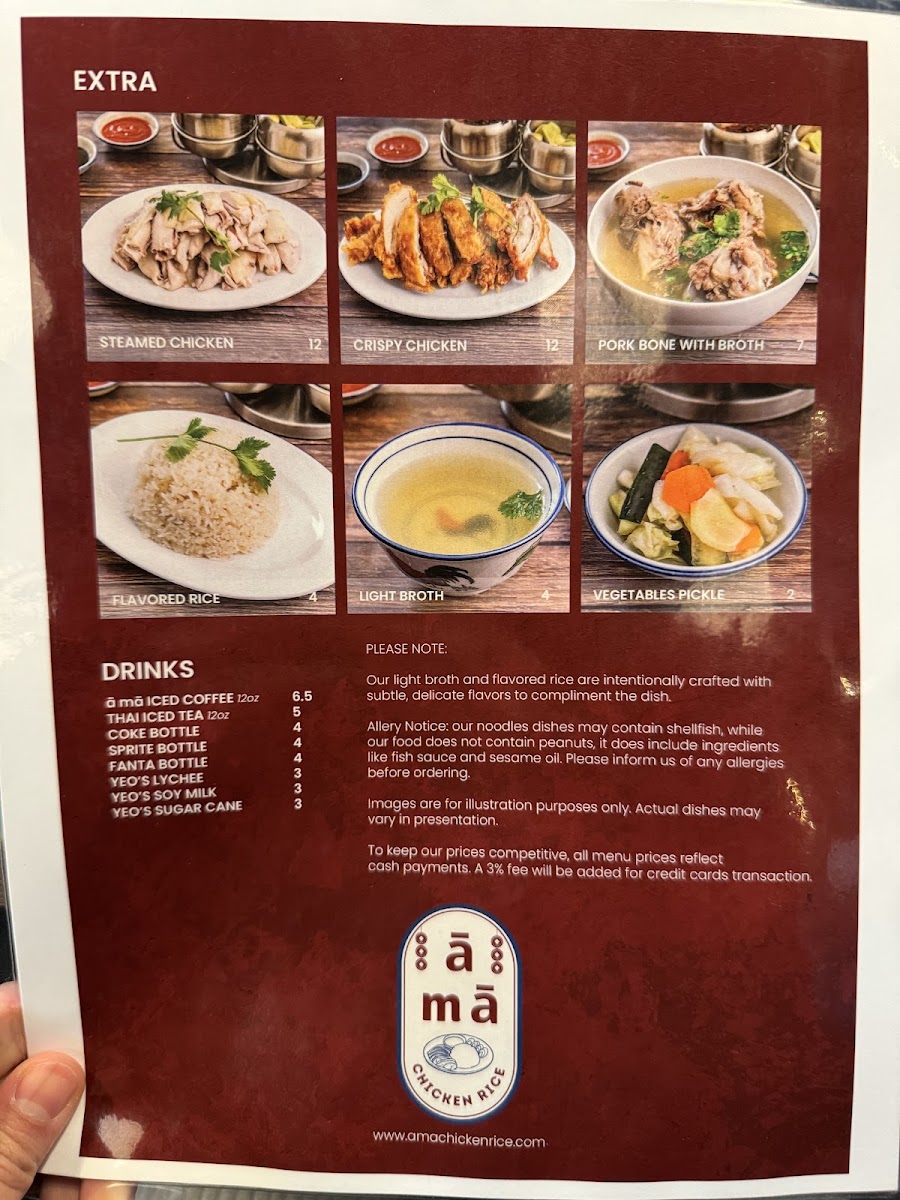 Located in Redmond, WA, A Ma Chicken Rice offers an authentic taste of Southeast Asian cuisine, especially known for its mouthwatering chicken rice dishes. The menu features options like the Classic Chicken Rice and Crispy Chicken Rice, both of which have garnered rave reviews for their tender, juicy meat and expertly fried crispiness. Each serving comes with a side, two flavorful sauces, and a delightful light broth that enhances the overall dining experience.